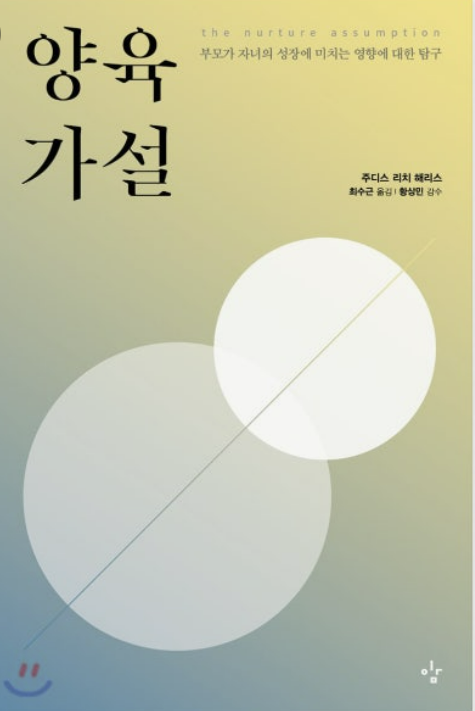 하지만 주디스 리치 해리스는 이러한 믿음이 ‘양육가설’이라는 일종의 사회적 신화라고 말한다. 그녀는 부모의 영향력이 아이의 성격 형성에서 차지하는 비중이 과도하게 부풀려졌다고 주장한다. 그녀는 수십 년간의 심리학 연구와 통계 자료를 분석하며, 동일한 가정에서 자란 형제자매조차 성격과 행동 양식이 크게 다를 수 있다는 점을 지적한다. 같은 부모 아래서 같은 규율과 사랑을 받았음에도 불구하고, 한 아이는 사교적이고 외향적인 반면 다른 아이는 내향적이고 조용한 성격을 가질 수 있다. 이런 차이를 단순히 양육 방식만으로 설명하기는 어렵다고 말한다. 양육가설을 뒤흔드는 핵심 논거 중 하나는, 입양아나 쌍둥이를 대상으로 한 연구 결과다.